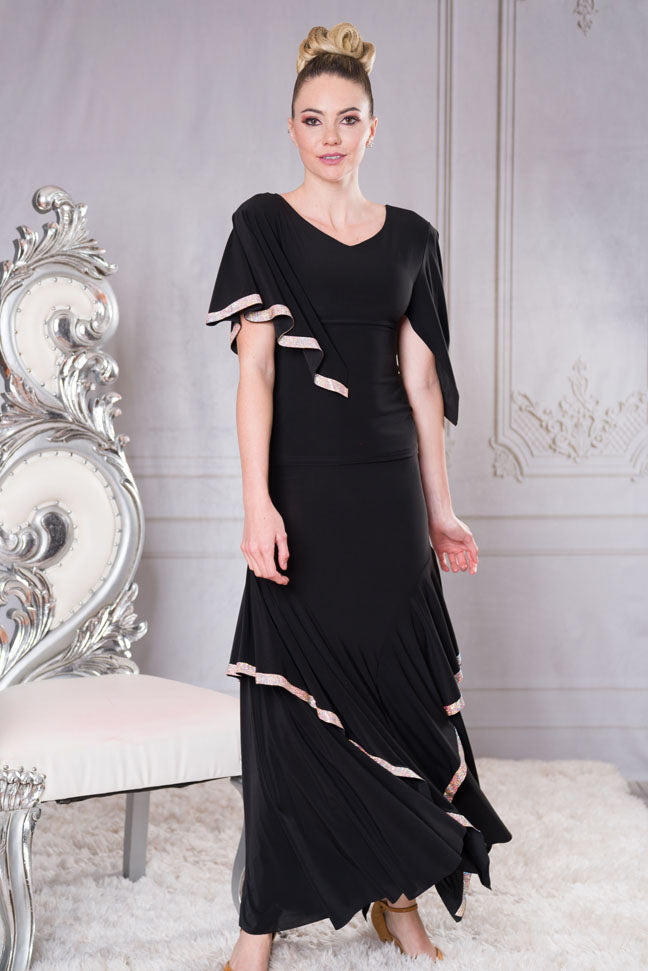 Dance America S2443 Diagonal Rhinestone Striped Latin Practice Skirt in Stock