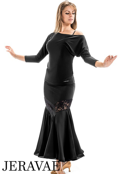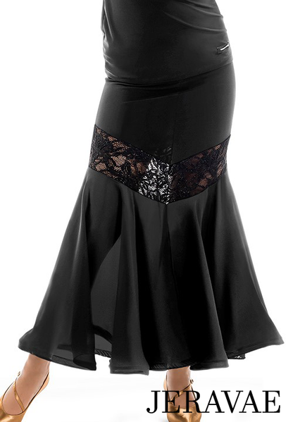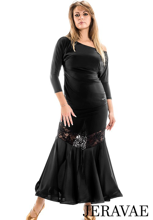 Victoria Blitz APE Long Black Ballroom Practice Skirt with Shimmer Stretch Lace Appliqué Insert PRA 994 in Stock