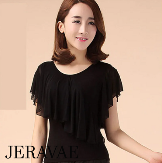 Tuck Out Latin or Ballroom Practice Dance Top with Mesh Ruffle Detail on Front and Back for Girls and Women PRA 1095_sale