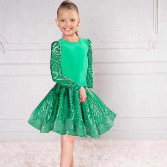 Dance America Long Sleeve Green Velvet Bodysuit for Girls JR-B2_sale
