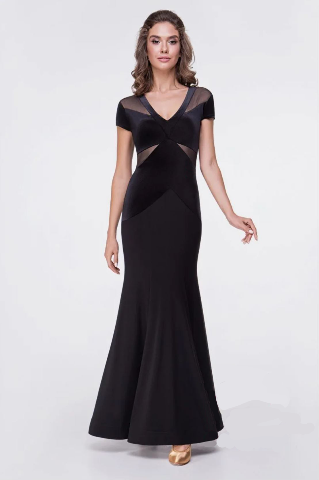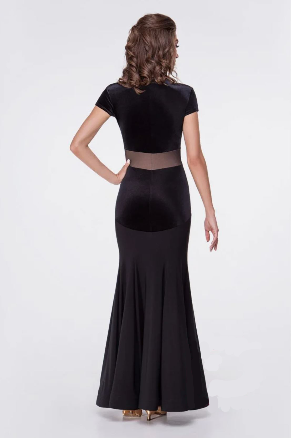 Beautiful Velvet and Mesh Cut Out Ballroom Practice Dress with Cap Sleeves and Wrapped Horsehair Hem Pra1171