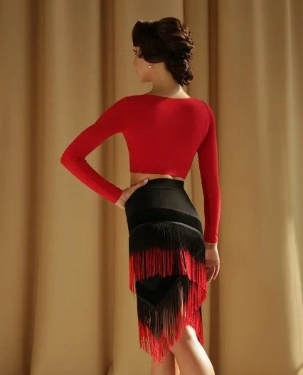 Simple Practice Crop Top for Ballroom or Latin with Long Sleeves and High Neck PRA 603