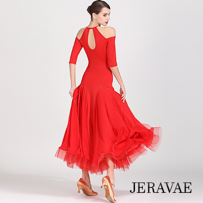 Black Ballroom Practice Dress with Cold Shoulder Detail, Keyhole, and Half Sleeves PRA 805_SALE