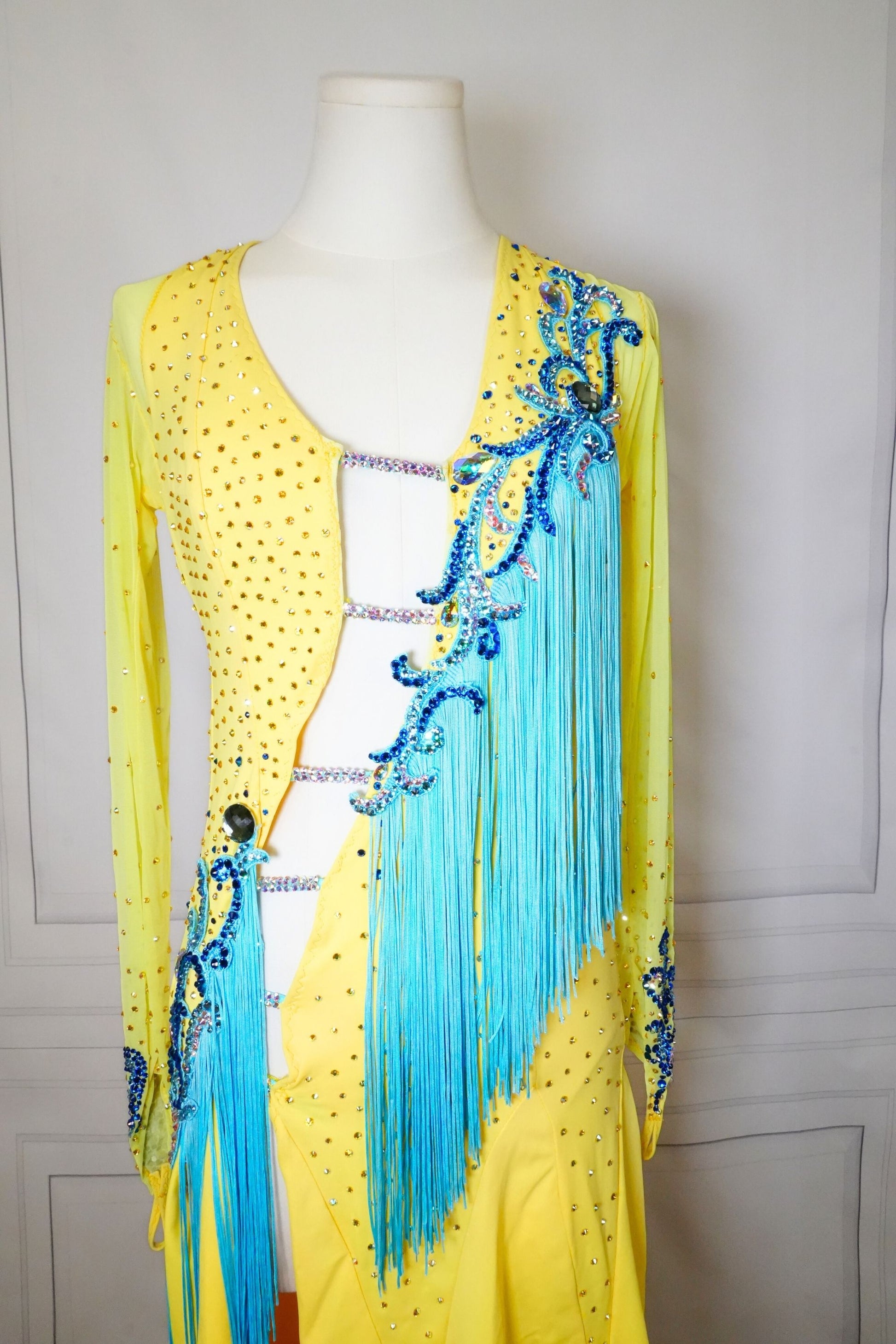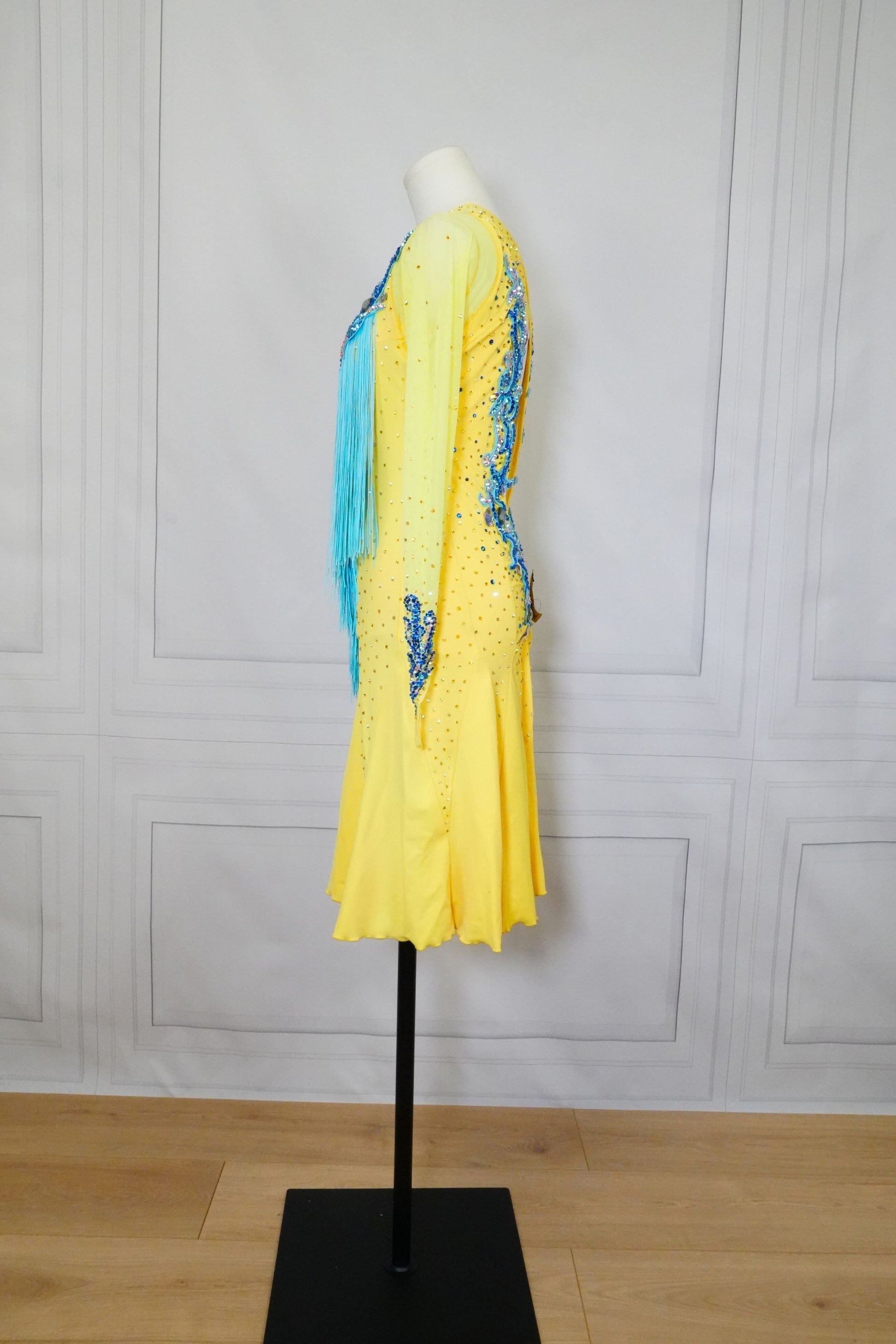 Bright Yellow and Blue Rhythm Dress with fringe Lat034 Size Medium
