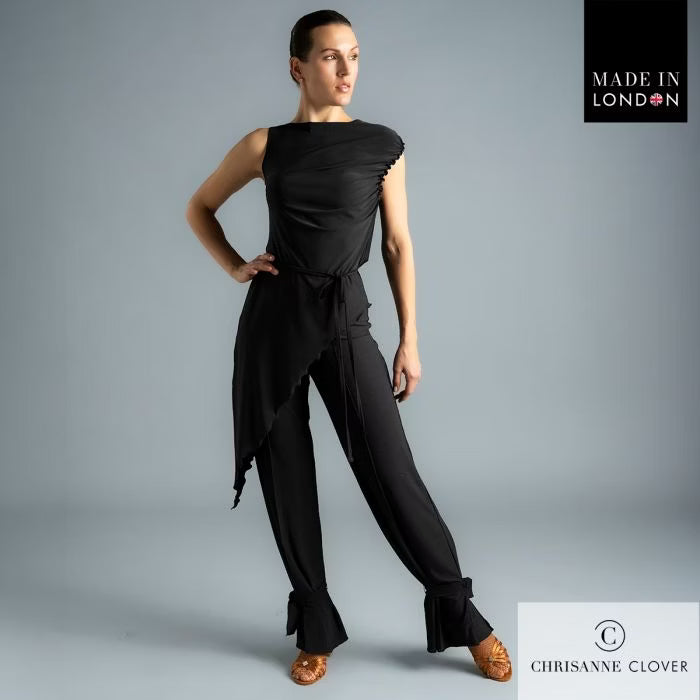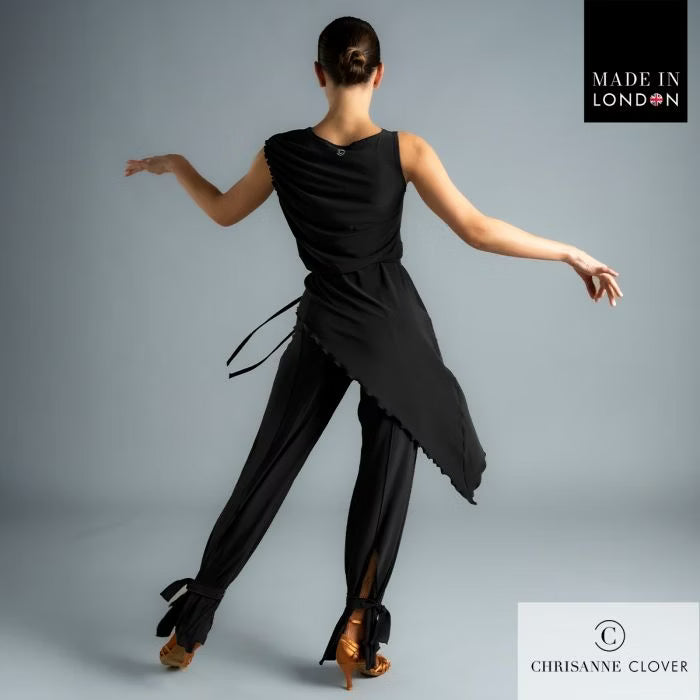 The diagonal shape flows gracefully into a light, airy finish, complemented by a crepe tie belt that can be worn for added definition or removed for a relaxed look. A crystallized Chrisanne Clover logo sits at the centre back, adding a luxurious finishing touch. Pair it with the Emanuela Trousers for effortless elegance or team it with hotpants for a confident, standout style.