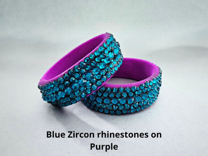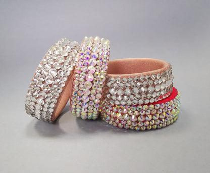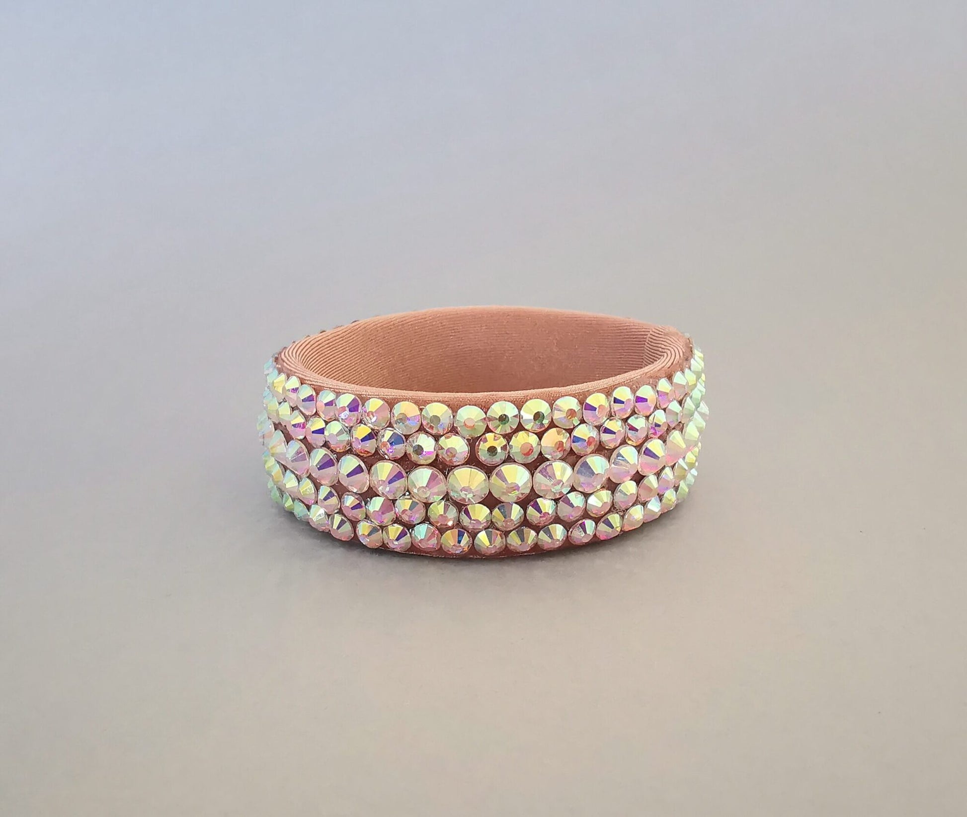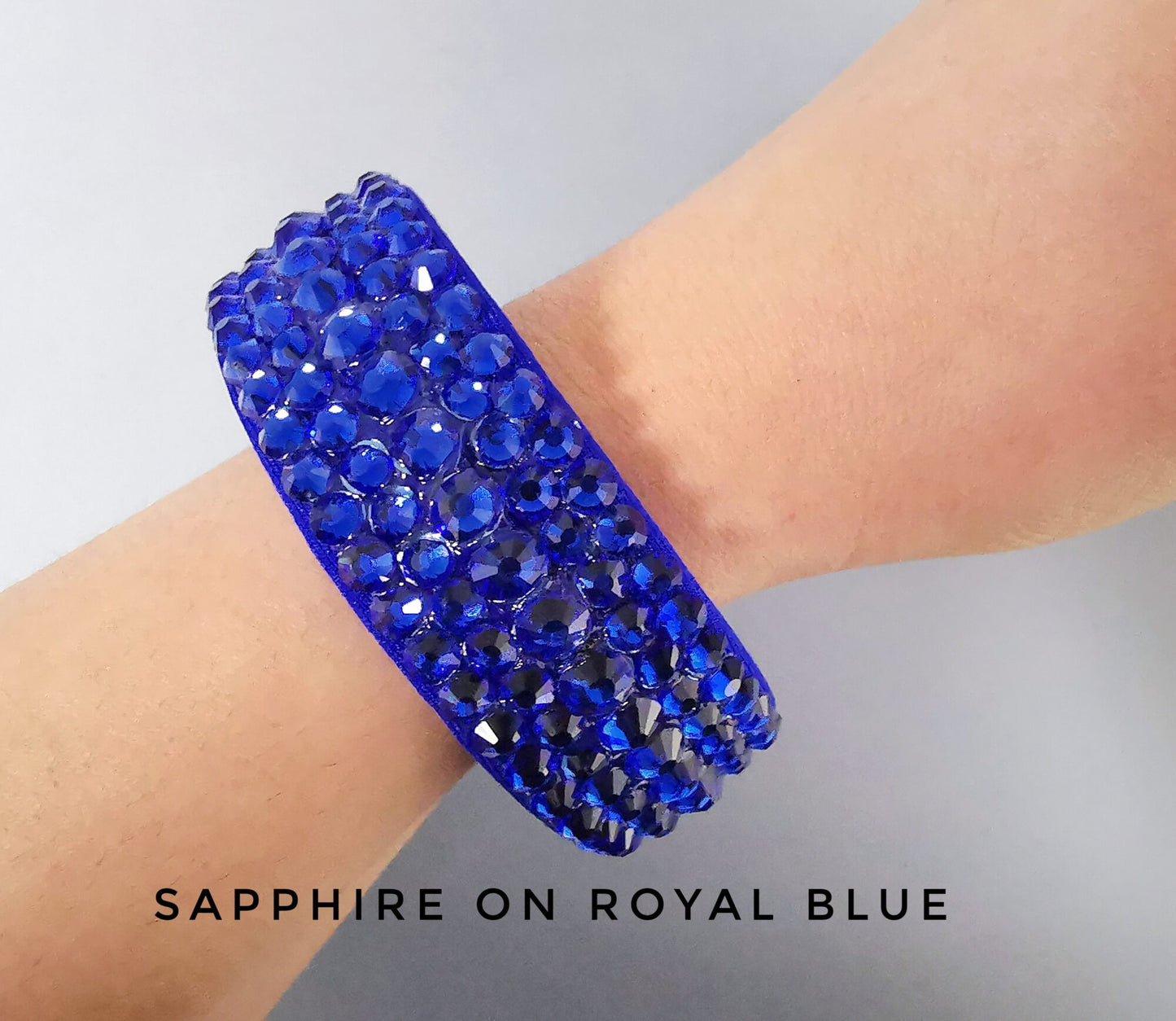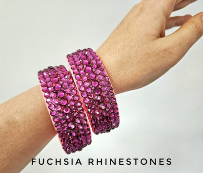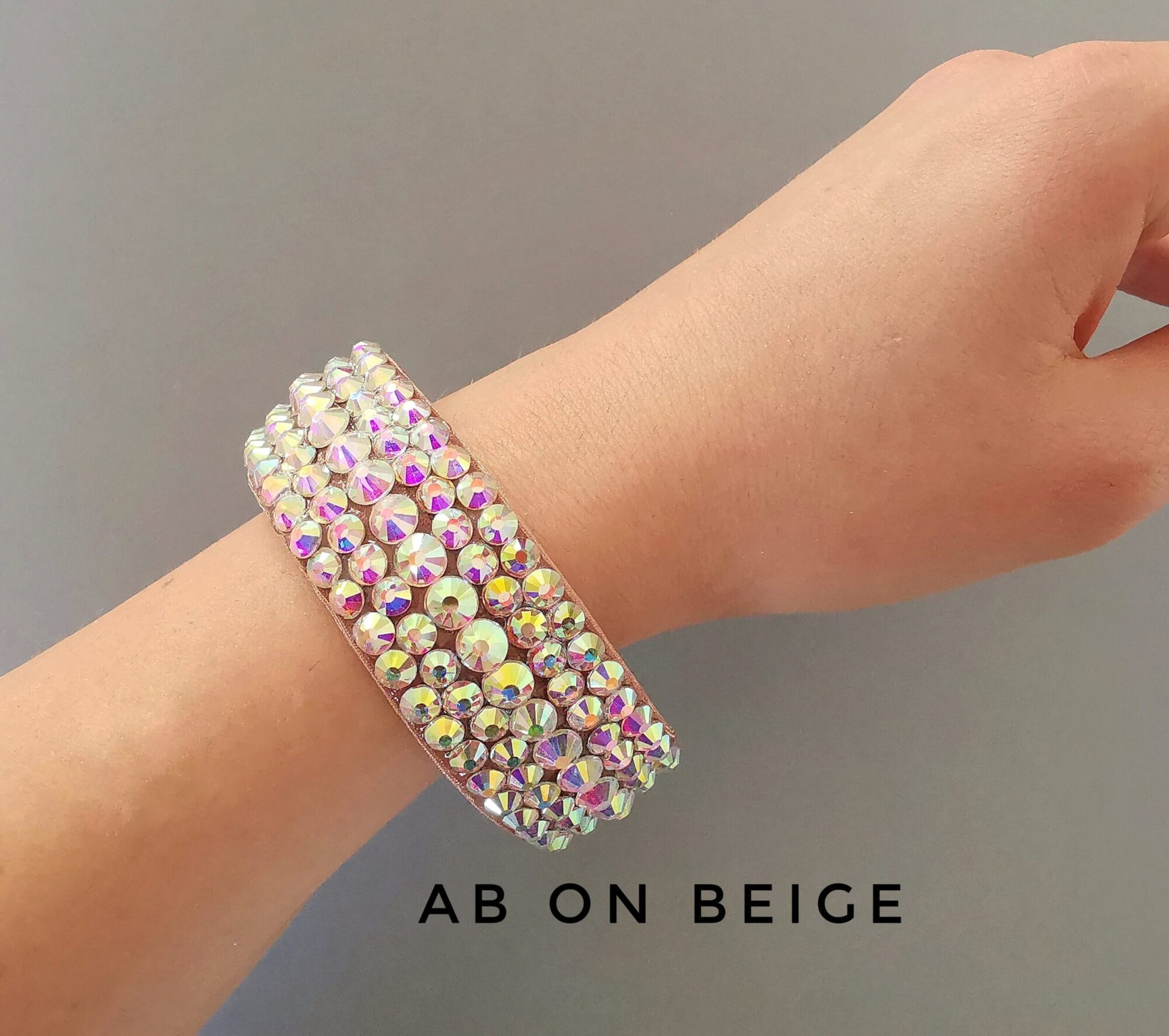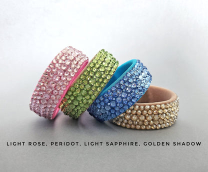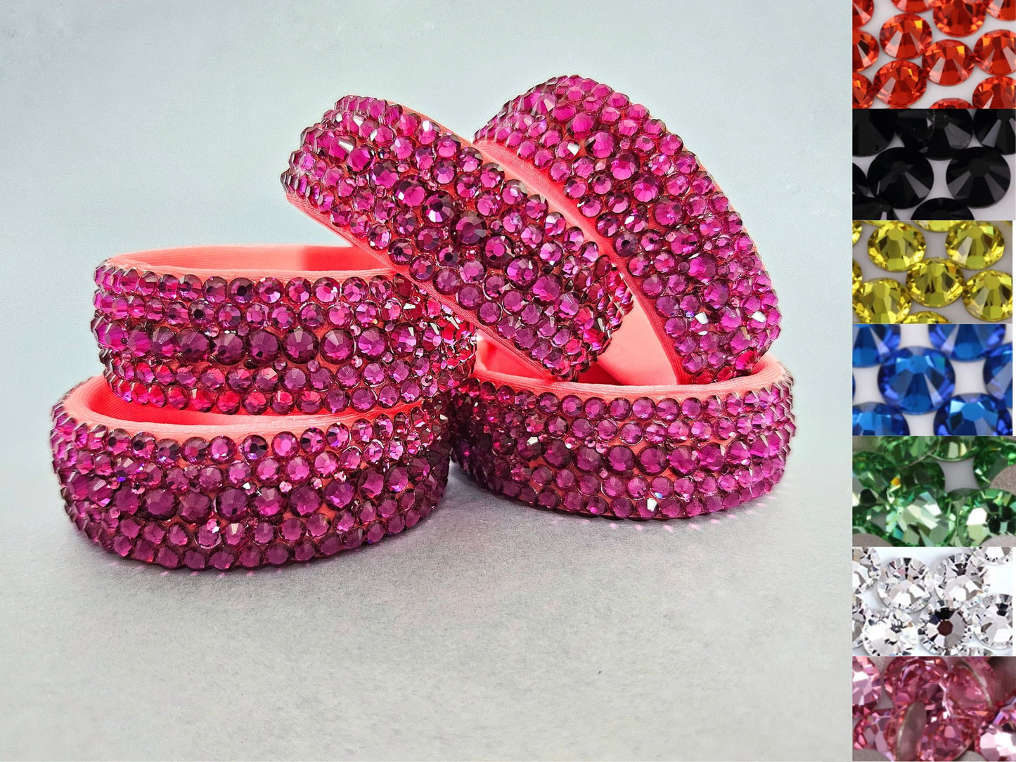 Bangle bracelets with 5 rows of stones, 24 colors of rhinestones and 15 colors of the backing are available.