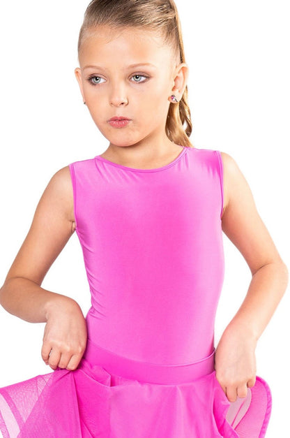 Dance America JR-B1 Girls Regulation Sleeveless Ballroom Dance Bodysuit in Stock