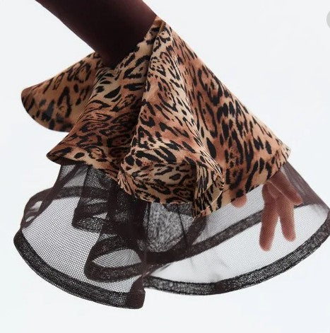 Black and White Leopard Print Practice Dress with Ruffle Sleeve Floats Pra1553