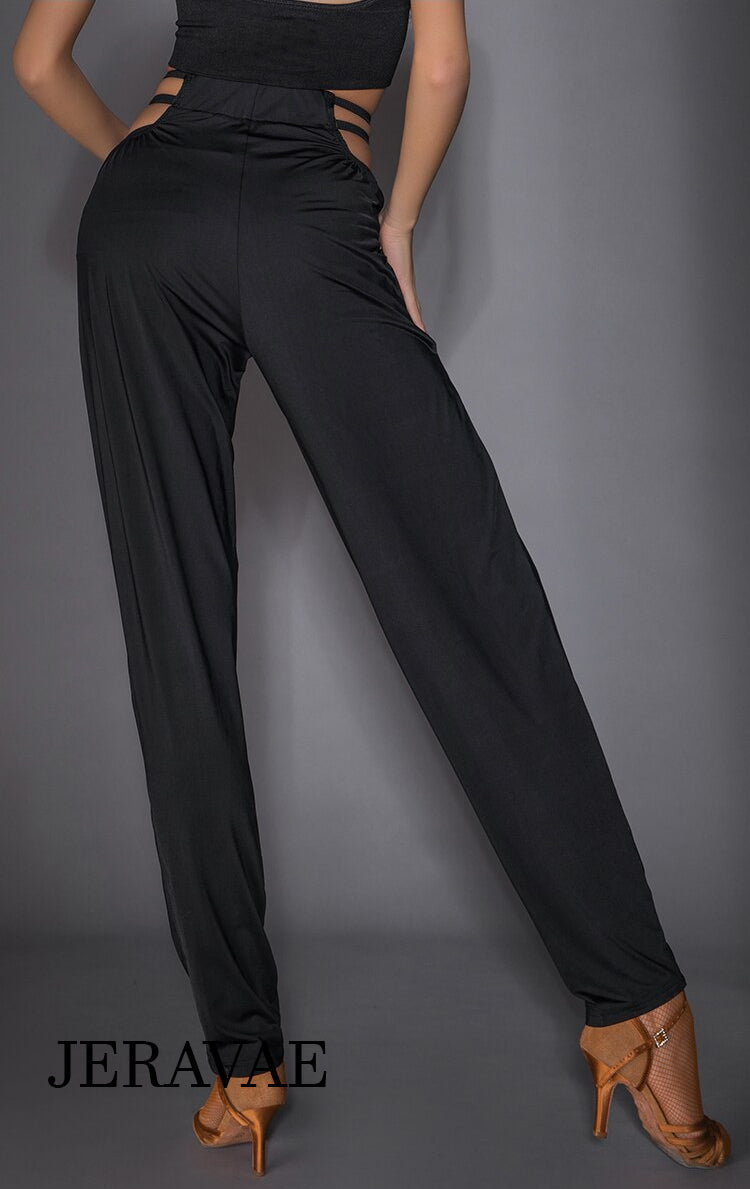 Ladies Ballroom or Latin Practice/Teaching Pants with Sexy Peek-a-boo Cutout on Hips and Tie Accents on Ankles PRA 710_SALE