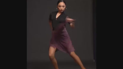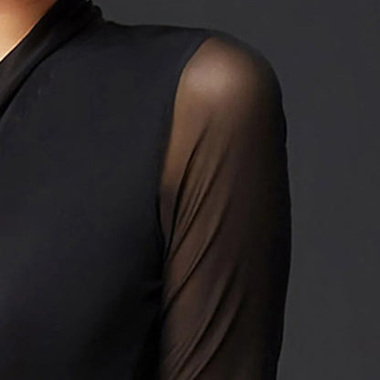 Latin Dance Bodysuit with Mesh Short Sleeves and V Neck Pra 1404