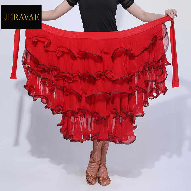 Black Latin Practice Skirt with Two Layers of Black and White Fringe in Angular Hem Shape PRA 310_sale
