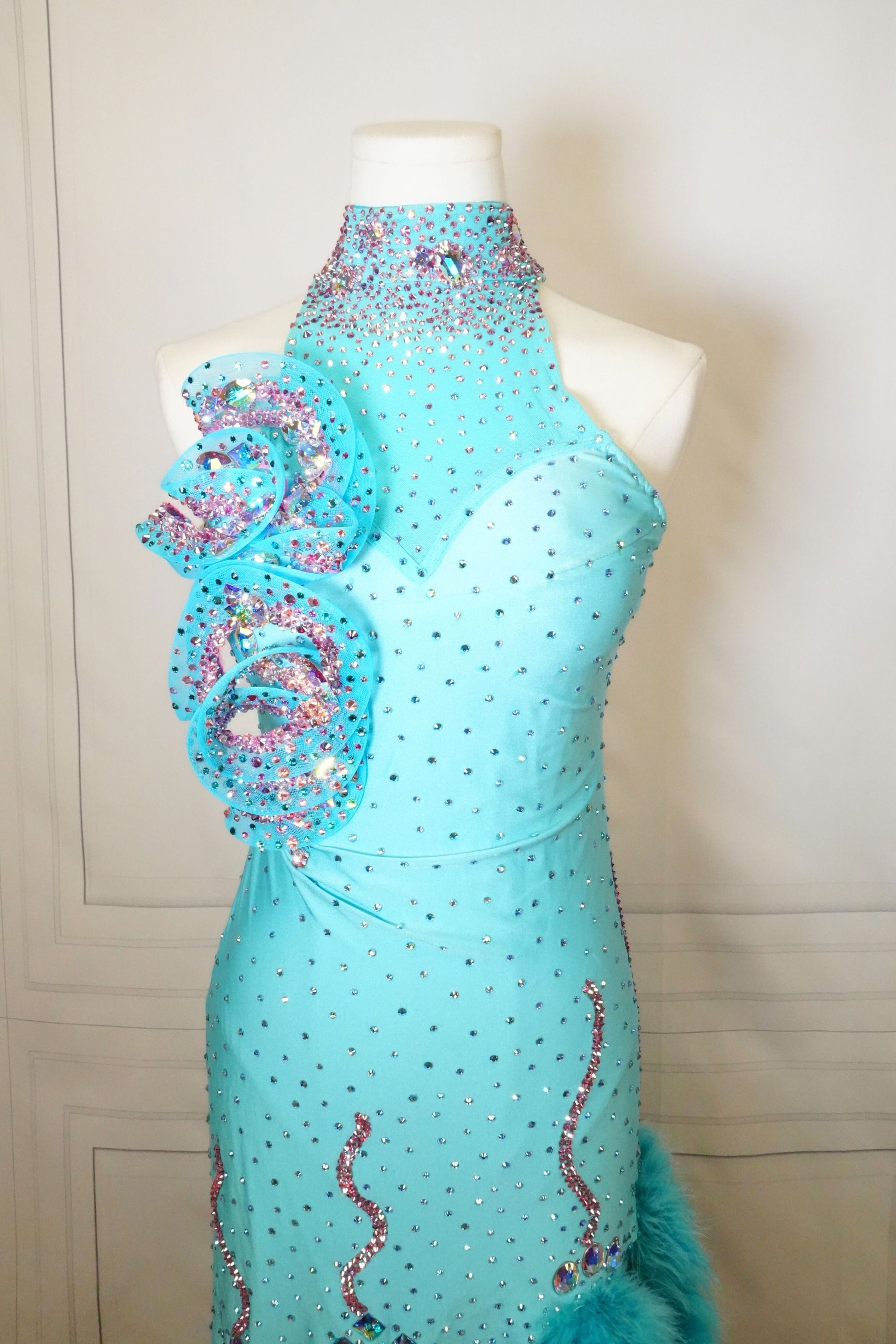 Mint Blue and Pink Feather Latin/Rhythm Dress Lat003 Size Small