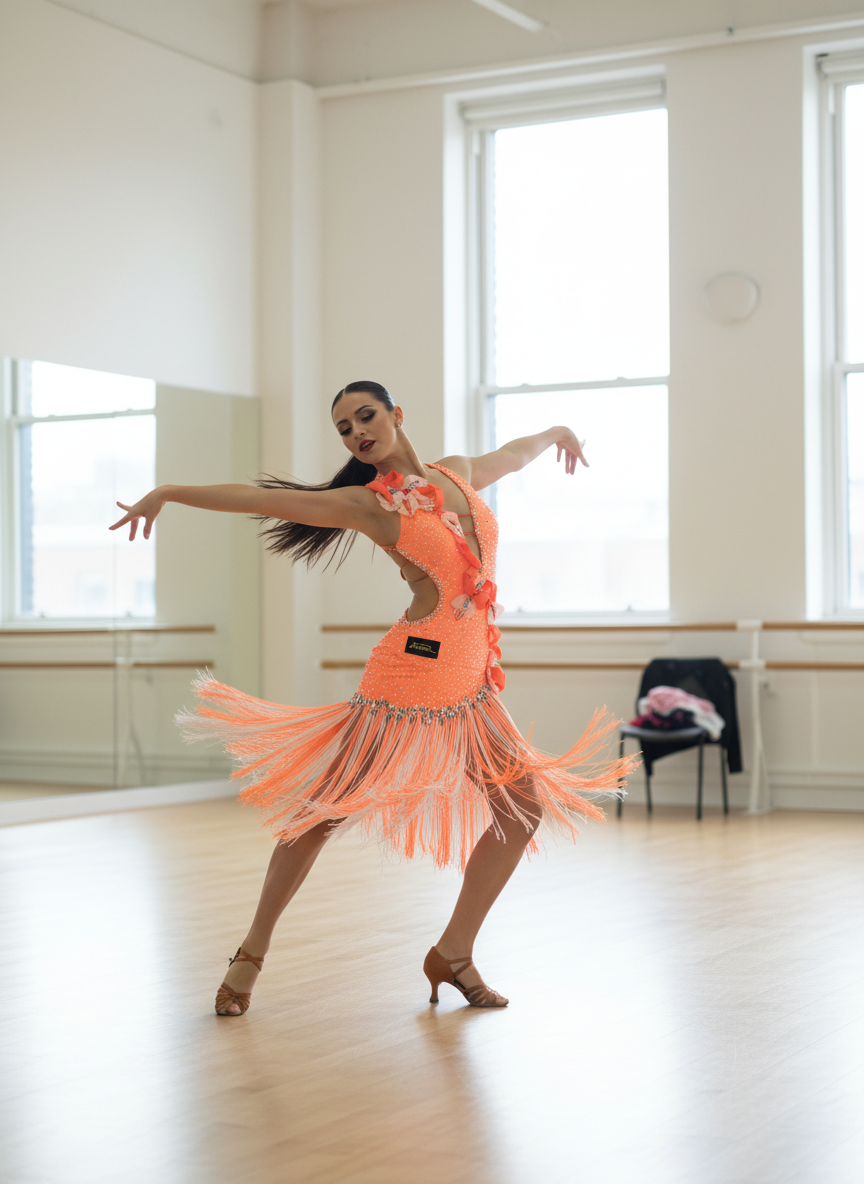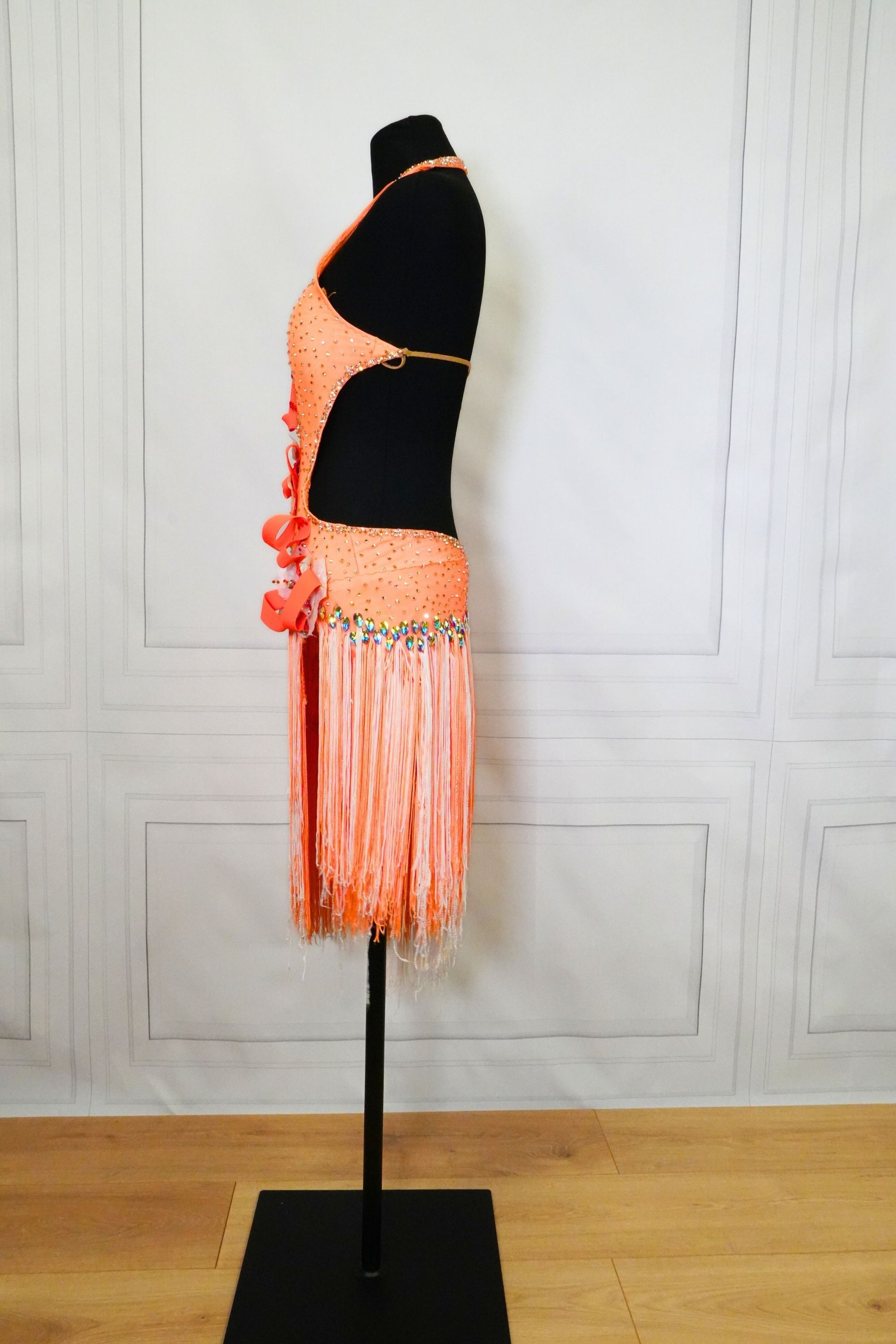 Orange Latin/Rhythm Dress with White and Orange Fringe Lat019 Size Small