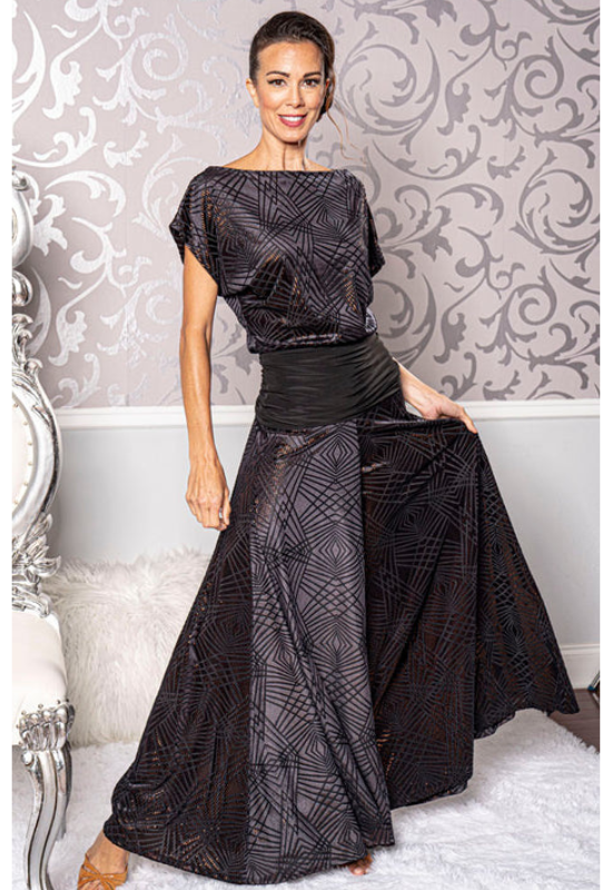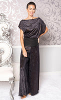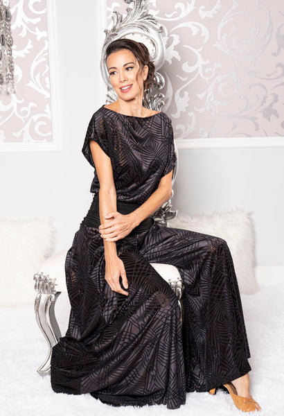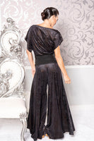 Dance America P2406 Women's Extra Wide Black Velvet Palazzo Practice or Teaching Pants in Stock